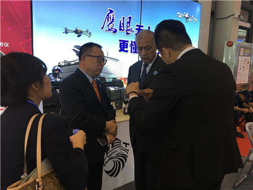 (新加坡無(wú)人機(jī)產(chǎn)業(yè)協(xié)會(huì)主席視察鷹眼展位)