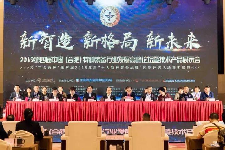 4月22日,以“新智造、新格局、新未來”為主題的2019第四屆中國(合肥)特種裝備行業(yè)發(fā)展高峰論壇暨技術(shù)產(chǎn)品展示會(huì)及“京金吾杯”第五屆2018年度“十大特種裝備品牌”頒獎(jiǎng)盛典在合肥白金漢爵大酒店隆重舉行。